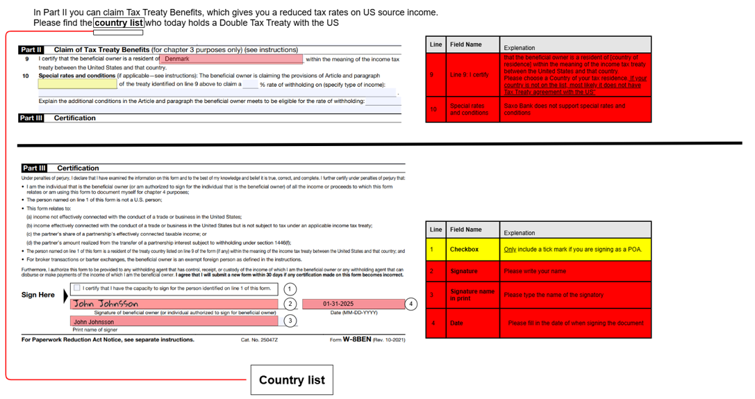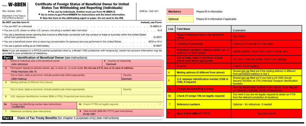 Níže naleznete pokyny, jak správně vyplnit formulář W-8BEN a čestné prohlášení.