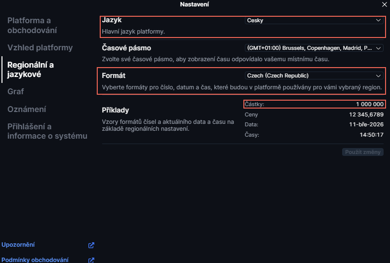 Řešením je přejít do hlavního menu > Nastavení platformy > Regionální a jazykové a změnit formát na angličtinu. Důvodem je, že některá regionální nastavení mění tečku (.) na čárku (,).