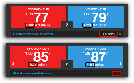 - při nákupu je Cenová tolerance přičtena k aktuální ceně Ask