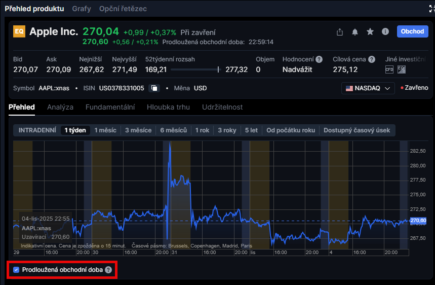 Jak zadat obchod během obchodování v prodloužených hodinách