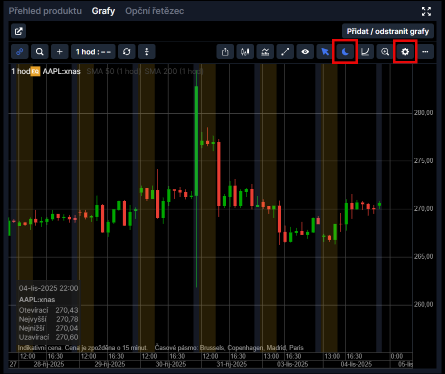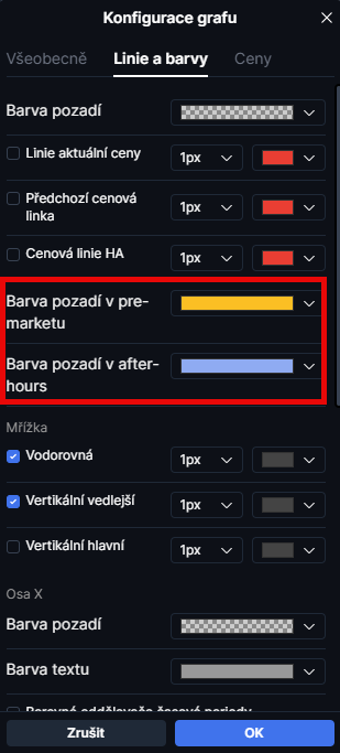 Jak aktivovat prodloužené obchodní hodiny na grafech?