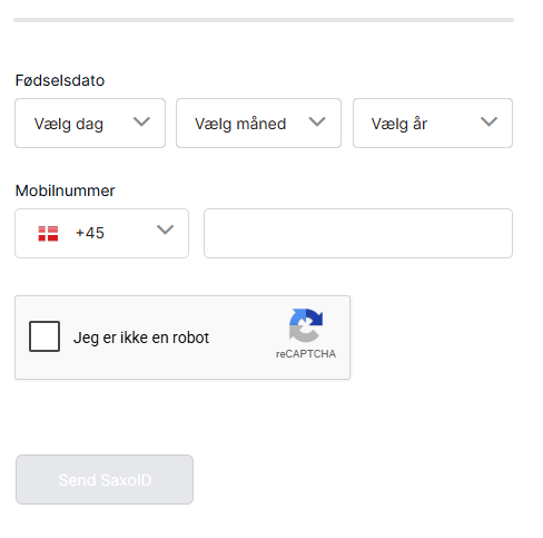 Hvis oplysningerne matcher en eksisterende konto, sender vi dit SaxoID til dit mobilnumme