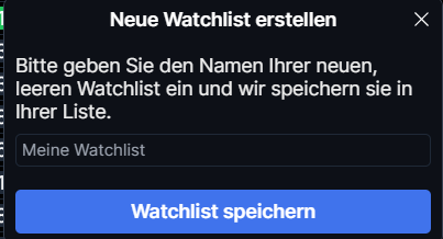 - Unter Neu erstellen kreieren Sie Ihre individuelle Watchliste