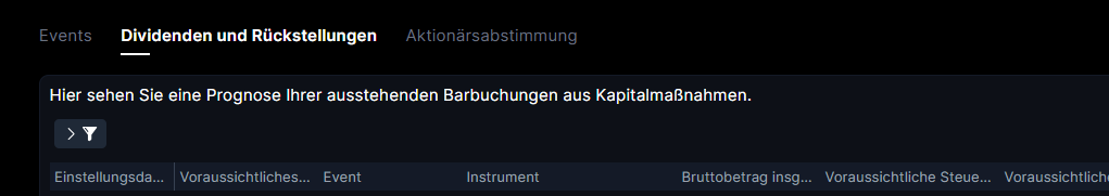 - Verfolgen Sie bevorstehende Zahlungen, die noch nicht auf Ihrem Konto verbucht wurden, mit der Funktion „Bevorstehende Dividenden anzeigen“.