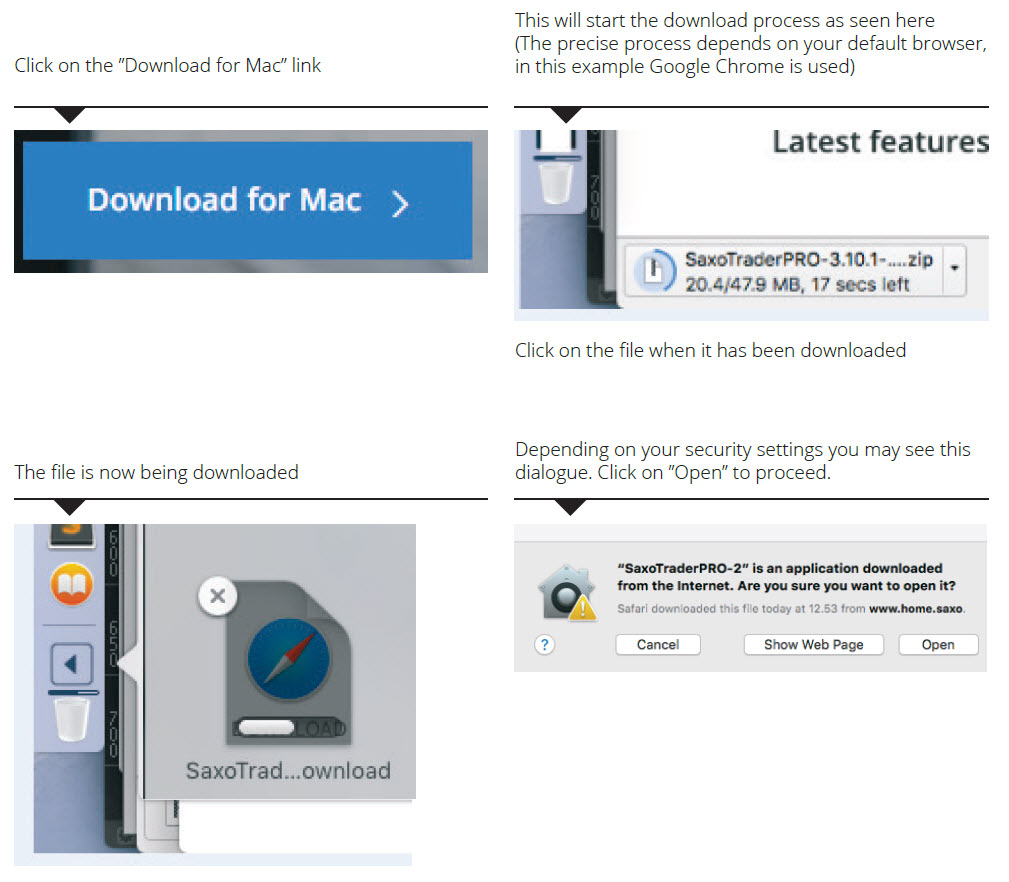 Wie kann ich SaxoTrader für Desktop auf meinem Mac herunterladen und installieren? Aktualisiert 18. November 2025 23:06 Laden Sie SaxoTrader für Desktop für Mac hier herunter und führen Sie das Installationsprogramm aus:
