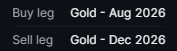 Example - Gold SpreadsFor this example, we will explore a calendar spread strategy using gold futures contracts. The strategy involves trading the GCQ6-Z6 spread, which consists of gold futures contracts with expiration dates in August and December 2026. By employing this approach, traders aim to capitalize on changes in the price difference between the two futures contracts with different expiration dates. The goal is to profit from the relative price movement between the August and December contracts, rather than the absolute price of gold itself. At the bottom of the trade ticket, you will find a specification of buy and sell legs as shown below: |