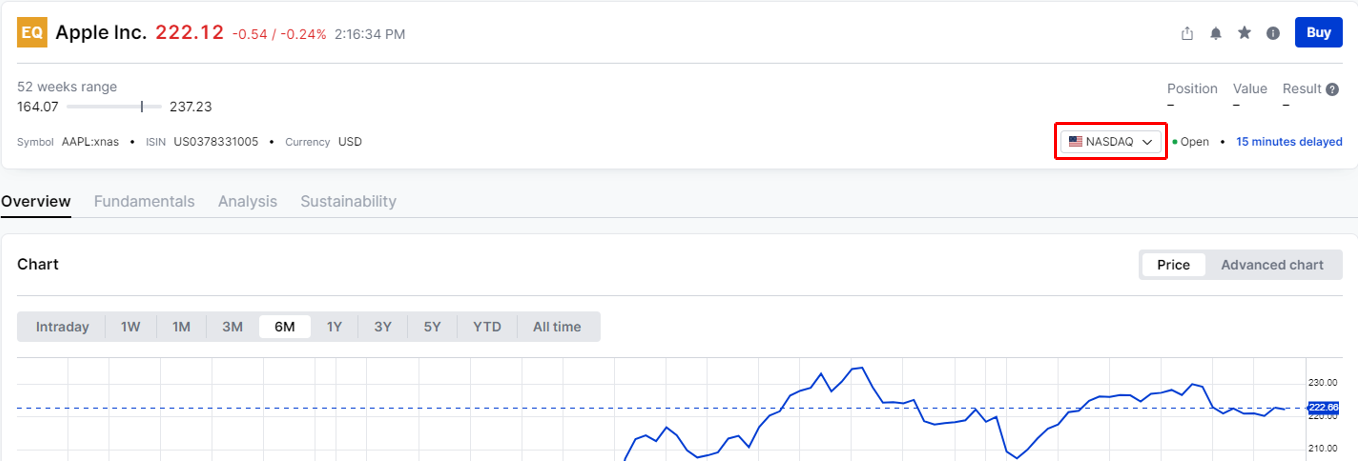 If you wish to receive live prices for a particular instrument and need to check which exchange you should subscribe to, you can view it on the platform.
