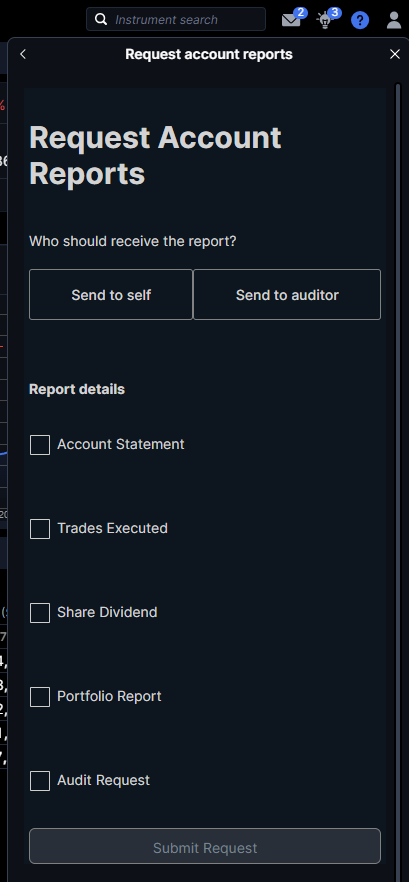 SaxoTrader, SaxoInvestor* and SaxoTrader for deskstop: Navigate to the support '?' > Contact us > Write to us > Account Support > Request account Reports