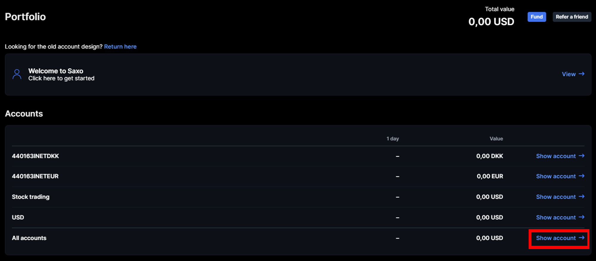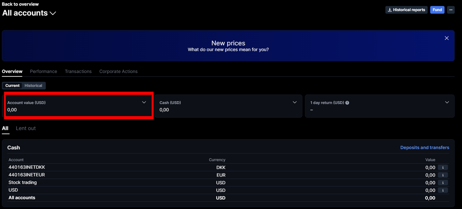 You can find your Account value under Portfolio > Under All accounts click Show account > You can now see the overview and Account value as shown below: