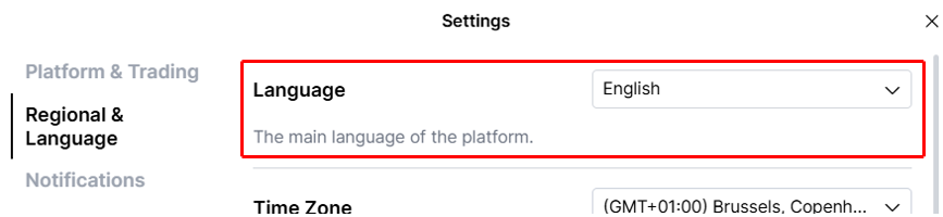 Select a language in the drop-down menu by Language.