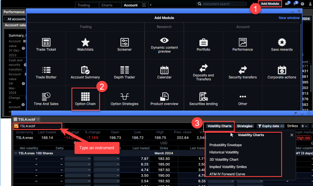 Among other features, Saxo offers pre-trade analytics features for the listed options on SaxoTrader desktop.