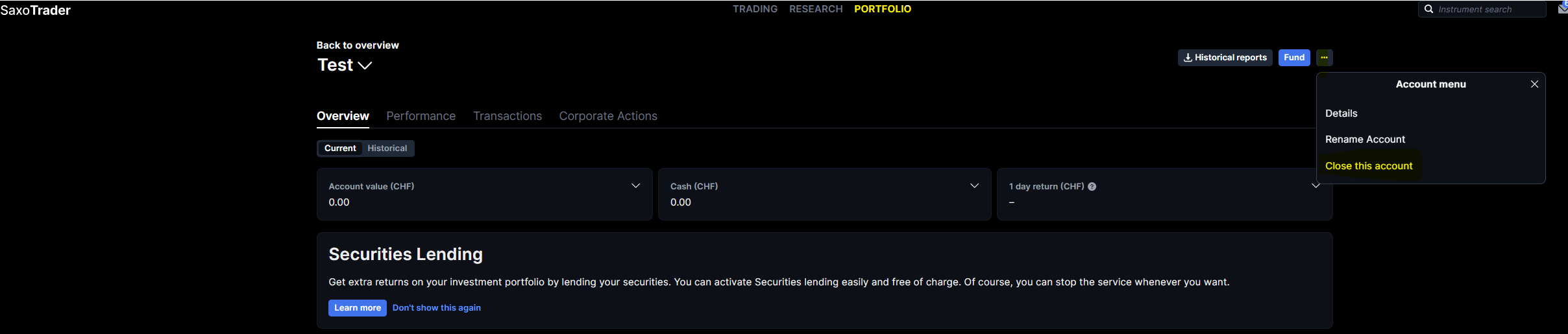 - SaxoInvestor: click Close my account
