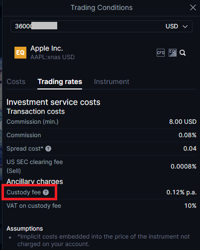 The custody fee will be calculated in the instrument currency daily using the end-of-day values. It will be converted to the account currency at zero conversion fees when booked monthly.