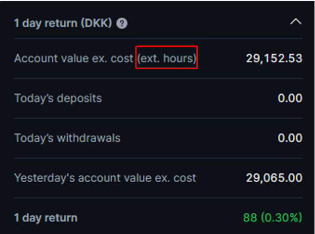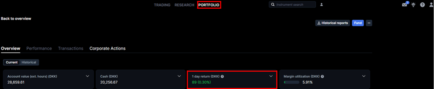 1 day return is accessible in SaxoInvestor, SaxoTraderGO and SaxoTraderPRO, providing insights into daily fluctuations in your Account Value.
