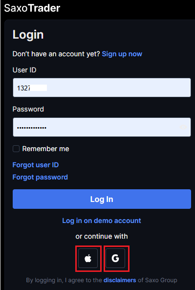 - You will automatically be navigated to the Saxo log in page where you will have to type in your credentials