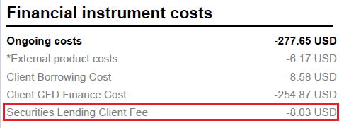 To ensure full transparency, the 50% of the revenue not received by you will be shown as a cost in your Cost summary within the Portfolio report. It will be listed under Financial instrument costs as Ongoing costs. This cost is indirect, meaning it is not directly charged or withdrawn from your cash balance, nor does it appear under transactions.