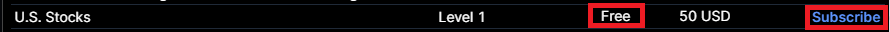 You can subscribe to get FREE real-time data on Level 1 US stocks and European Stocks.