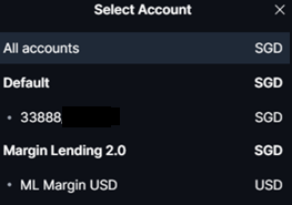 See below for an example of how the accounts will look on the platform when you have both Default account and Margin Lending 2.0 account:
