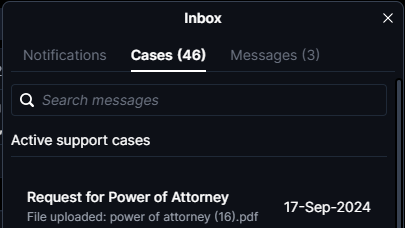 How do I find my inbox and support tickets/cases? Updated 24 November 2025 04:34 After you write to us your enquiry you can follow up on your cases by going to the envelop icon: Desktop platforms: > Inbox Mobile app: go to the menu > Inbox Example from SaxoTrader