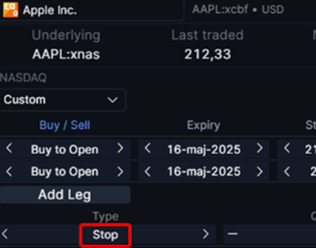 Once you have opened a trade ticket for a specific option, you can customise the order to meet your requirements. Just like a regular stock or ETF order, you choose an order type, quantity, price (not with market orders), and order duration.