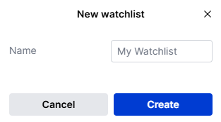To create a watchlist, click on the star > click New > Give the watchlist a name and click Create.
