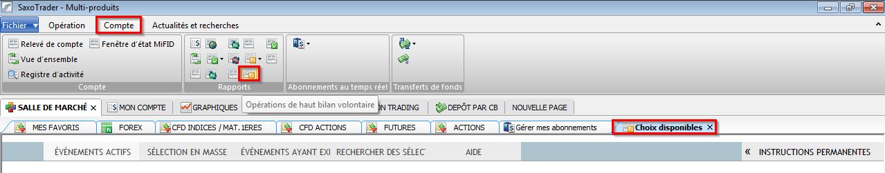 SaxoInvestor: Cliquez sur puis sur " Opérations sur titres"