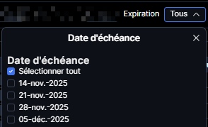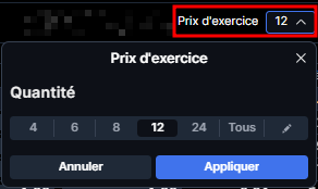 | Modifier le nombre de prix d'exercice | Trier par dates d'expiration | Ajouter des colonnes |