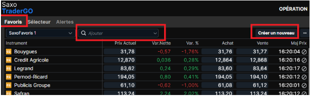 Créer une liste de favoris personnalisée dans SaxoTraderGO