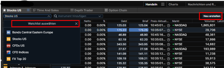 Après avoir lu votre liste, cliquez sur la liste de surveillance Schaltfläche et commencez avec la liste, en dehors de l'option Instrumentensuche hinzufügen die Instrumente , qui vous intéresse.