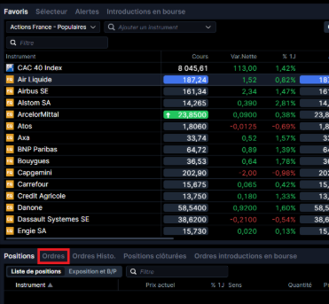 - Cliquez sur Portefeuille > Afficher le compte > Ordres