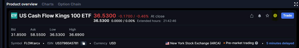- En utilisant la barre de recherche et en triant par ETFs, vous pouvez découvrir la liste complète des ETFs. Si vous désactivez la visibilité des instruments non négociables, vous ne verrez que ceux que vous êtes en mesure de négocier.