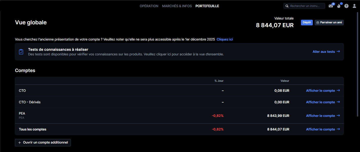 La nouvelle section Portefeuille a été créée dans le but de simplifier et d'améliorer le suivi de l'activité de votre compte. Ce guide vous donnera un bref aperçu des changements apportés à L’onglet et de la manière dont ils amélioreront le suivi de vos investissements et de vos transactions.