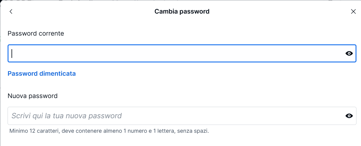 Se accedi utilizzando Face ID o l'impronta digitale e hai dimenticato la tua password attuale, puoi cliccare su "Password dimenticata" per creare una nuova password.