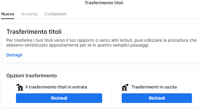Puoi scegliere se richiedere un trasferimento titoli in entrata o in uscita