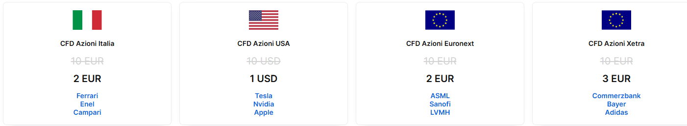 Per i Contract for Difference (CFD) su Azioni ed ETP vengono modificate le commissioni percentuali applicate al controvalore negoziato e ridotte in gran parte dei casi le commissioni minime.