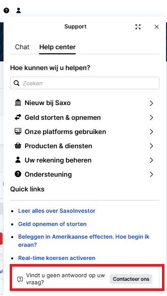 Een e-mailladres is vaak minder beveiligd en veel gevoeliger voor derden die ongewenst meekijken. Saxo heeft een uitermate beveiligde website waarbij het dus veel veiliger wordt om informatie uit te wisselen. Daarom kunt u eenvoudig via het platform een vraag stellen via een zogeheten "support ticket" (of ook via chat).