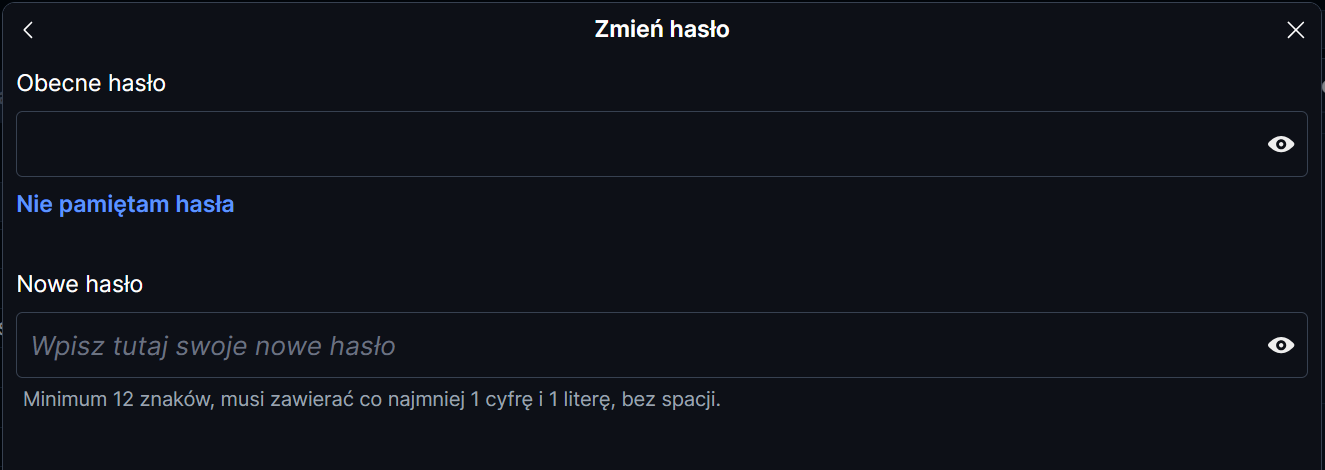 Jeśli logujesz się za pomocą Face ID/odcisku palca i zapomnisz swoje obecne hasło, możesz kliknąć Nie pamiętam hasła, aby je zmienić na nowe.