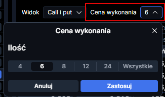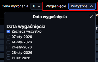 | Edytuj liczbę cen wykonania | Sortuj według dat wygaśnięcia | Zarządzaj kolumnami |