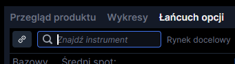 Alternatywnie, możesz najpierw otworzyć łańcuch opcji i wyszukać konkretną opcję w pasku wyszukiwania instrumentu:
