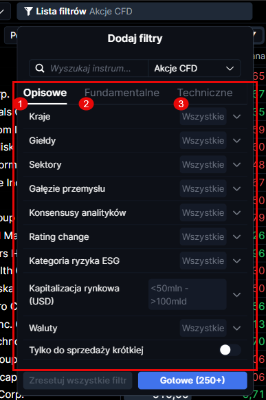 Masz do wyboru 3 główne kryteria: Opisowe, Fundamentalne i Techniczne.