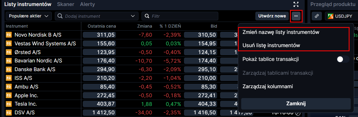 Kliknij na przycisk "...", aby zmienić nazwę lub usunąć listę.
