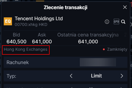 Jeśli handlujesz produktami z Hongkongu, pamiętaj, że zobaczysz, że giełda to giełdy hongkońskie (Hong Kong Exchanges) zarówno dla akcji, jak i opcji na akcje.