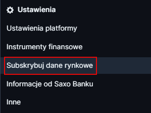 - SaxoTrader (komputer stacjonarny): kliknij Menu główne > Subskrybuj dane rynkowe