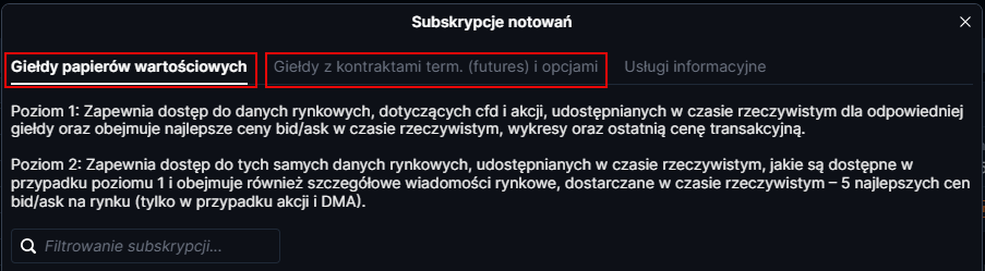 Po 9 miesiącach subskrypcja notowań akcji USA w czasie rzeczywistym zostanie automatycznie wyłączona. Jest to wymagane, aby potwierdzić, że dane Twojego konta i dane osobowe są aktualne. Otrzymasz powiadomienie w platformie; aby przywrócić dostęp, po prostu odnowisz subskrypcję.