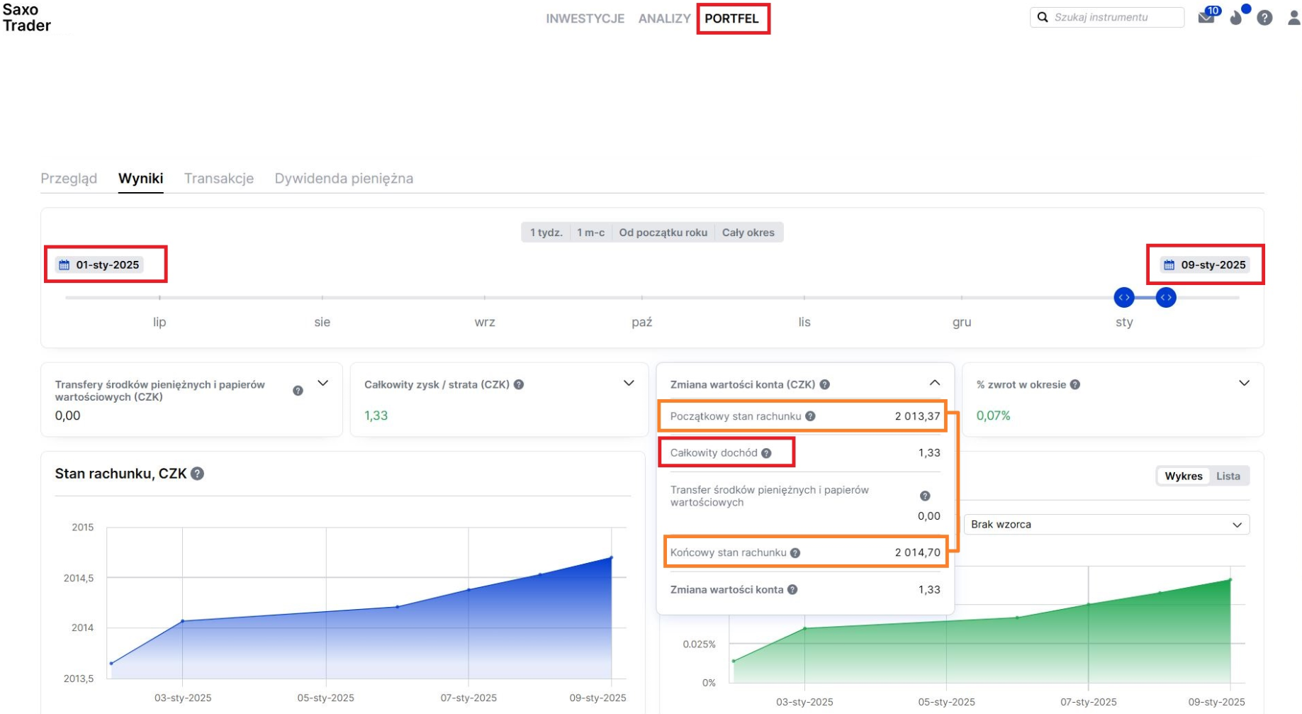 Całkowity zysk/strata o wartość konta na koniec okresu, skorygowana o wartość konta na początku okresu oraz zmiany wynikające z transferów gotówki i papierów wartościowych. Korekta o transfery gotówki i papierów wartościowych pozwala na analizę zysku/straty bez uwzględniania wpływów i odpływów kapitału, które mogą zawyżać lub zaniżać obserwowany zysk/stratę w danym okresie, np. duże depozyty gotówkowe na koncie lub straty wynikające z wypłat gotówki.